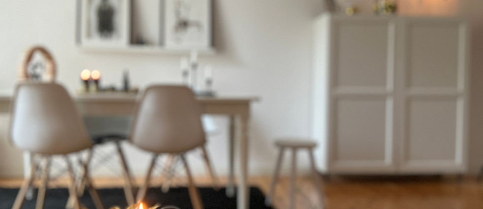 For this project, our expert had a budget of 30,000 euros. The design involved a period Berlin apartment with a living and dining area, kitchen-diner, bedroom , hallway, and mini-balcony. Stylistically, the look was relaxed with Scandinavian coziness and occasional retro and ethnic details. While the living and dining room exude an airy lightness with plenty of white, gray, and light wood, the kitchen was given dark gray walls, which provide a beautiful contrast and, together with wooden accents and an upholstered bench, create a particularly cozy and inviting effect.